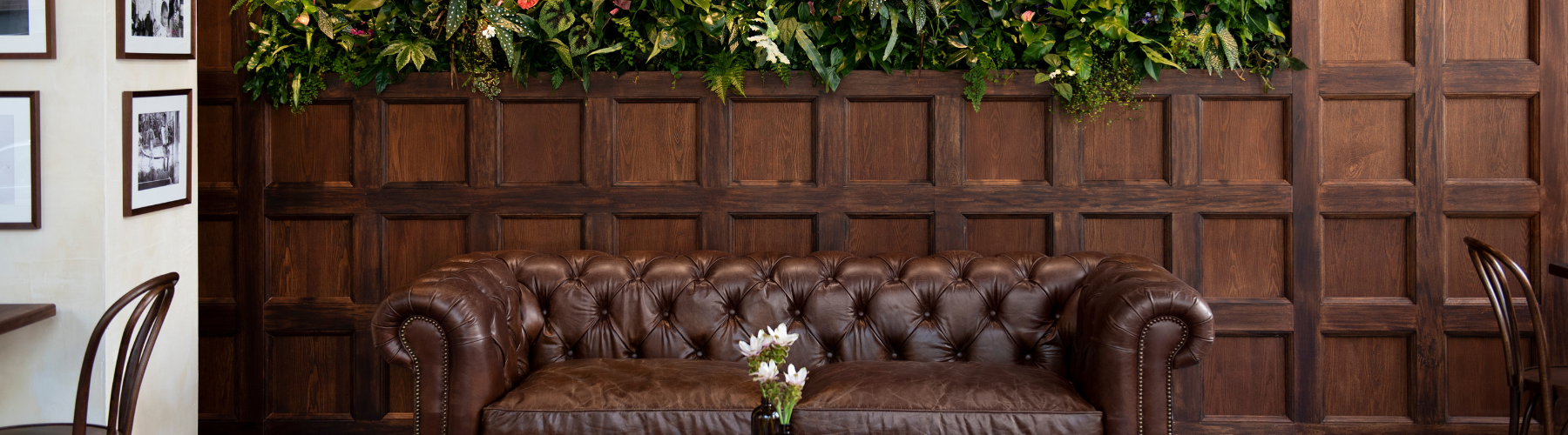 Greenery remains a defining feature. Three 16 foot planters, crafted from solid Colombian pine sourced from naturally fallen trees, hang from steel chains overhead, hollowed to hold cascading jungle plants and native flowers. Custom solid wood paneling inspired by traditional Bogotá doors, made from Flormorado and Colombian white oak, frames the lounge, with cutouts revealing layered plant life.